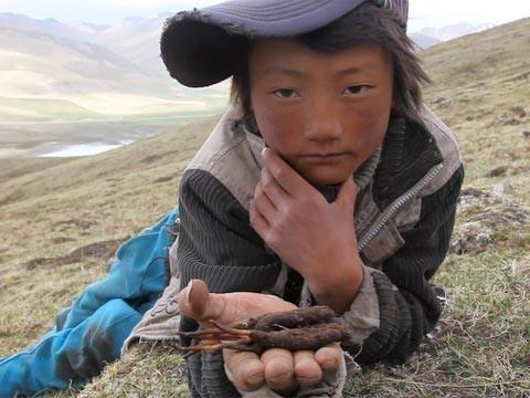 Harvest is by hand and begins in May and lasts for 5-6 weeks. In 2013, over 53 tons of yartsa gunbu was harvested. Since 1997, prices have increased by over 500%. A single average-sized piece can cost over $16. A month’s supply of 30 pieces can cost a consumer over $465.00. This is the world’s most expensive fungus. Because of this, yartsa gunbu is not only used for its medicinal value, but also as a status symbol to show one’s wealth. In recent years, areas of Tibet have begun to enforce rules that no outsiders are allowed to harvest or export the fungus.