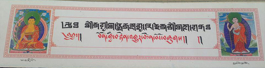 Today, the titles of many Yungdrung Bön texts are written in both the Zhang Zhung mar chen script as well as in the Tibetan script. Additionally, many Zhang Zhung words are found within the texts and even significant section headings are given in both the Zhang Zhung and Tibetan language.