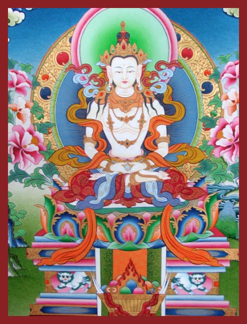 The enlightened deity, Shenlha Okar, embodies all positive qualities including immeasurable compassion
