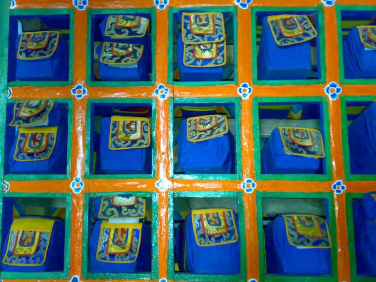 Yungdrung Bon texts within the Yangton Gompa in Dolpo, Nepal