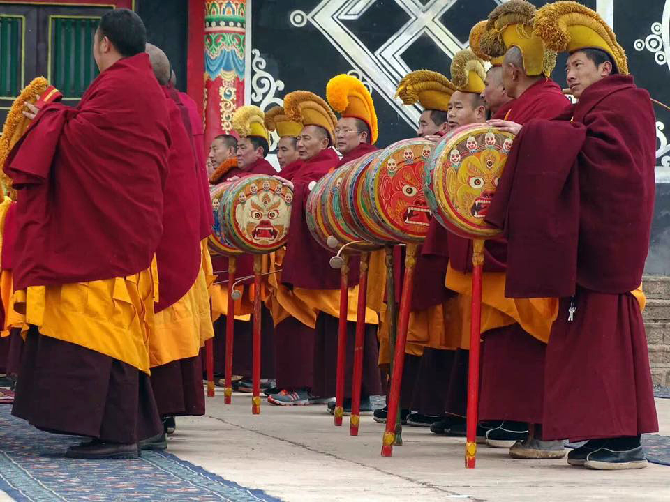 Drummers during a celebration at Nangzhig Yungdrung Bon Monastery
