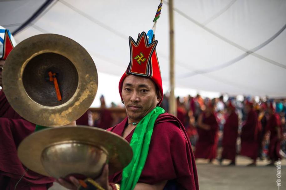 A Yungdrung Bon monk plays the cymbals during a religious ceremony. Photo credit: Unknown
