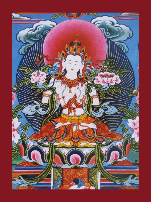 6. Tséwang Rikdzin: As a long life deity, this yidam is white in color.