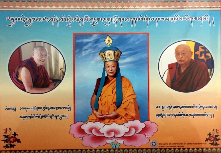 Placard handed out at Menri Monastery on the occasion of HH 33rd Menri Trizen’s cremation. Photo credit: Raven Cypress Wood