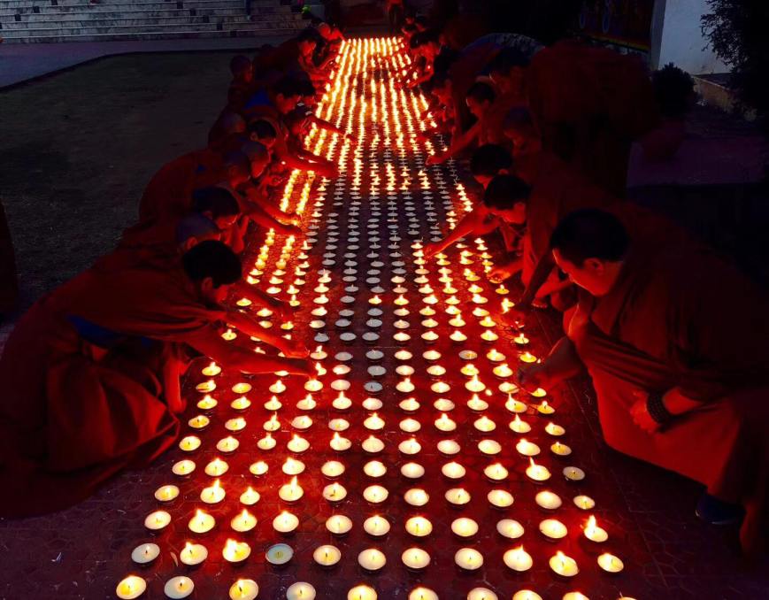 Offering light at Menri Monastery in Dolanji, India. Photo credit: Unknown.