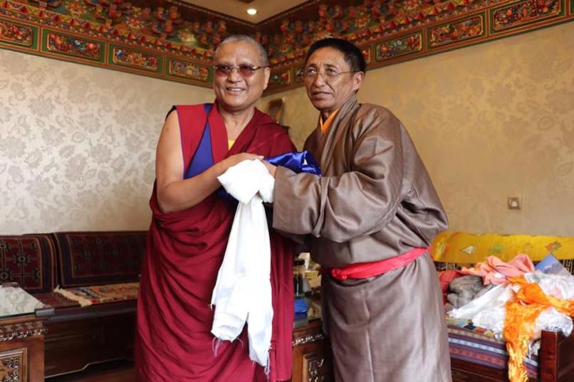 Menri Ponlop Rinpoche Yangton Trinley Nyima meets with the Shen lineage holder and direct descendant of Lord Tonpa Shenrap, Gyalwa Shense Rinpoche. Photo credit: Unknown.