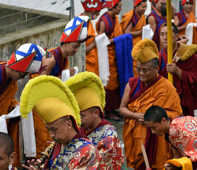 His Eminence Menri Ponlop Yangton Thrinley Nyima Rinpoche is welcomed back to Menri Monastery after traveling abroad. Photo credit: Unknown