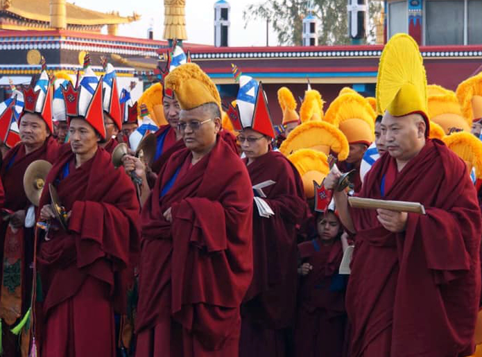 HH 34th Menri Trizin Dawa Dargye Rinpoche and HE Menri Ponlop Yangton Thrinley Nyima Rinpoche during a ritual at Menri Monastery in Dolanji, Inida. Photo credit: Unknown.