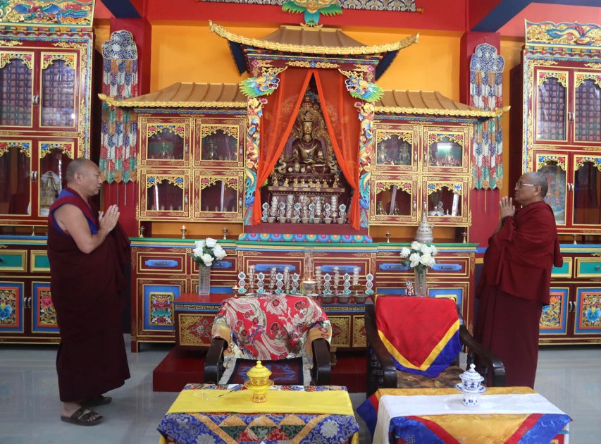 H.H. 34th Menri Trizin Rinpoche and H.E. Menri Pönlop Rinpoche visit the medical college at Menri Monastery. Photo credit: Unknown.