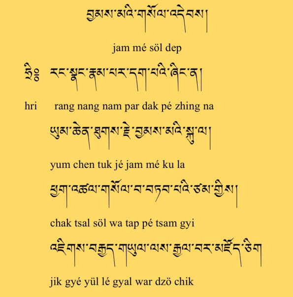 just by paying homage and offering this supplication to the state of Yümchen Tükjé Jamma,*