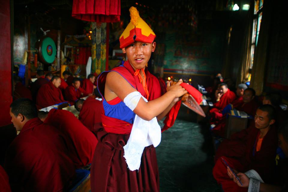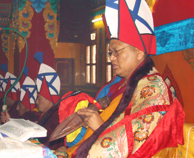 His Eminence Menri Ponlop Yangtön Thrinley Nyima Rinpoche performs the rites of Wal Phur Nakpo at Menri Monastery. Photo credit: Unknown
