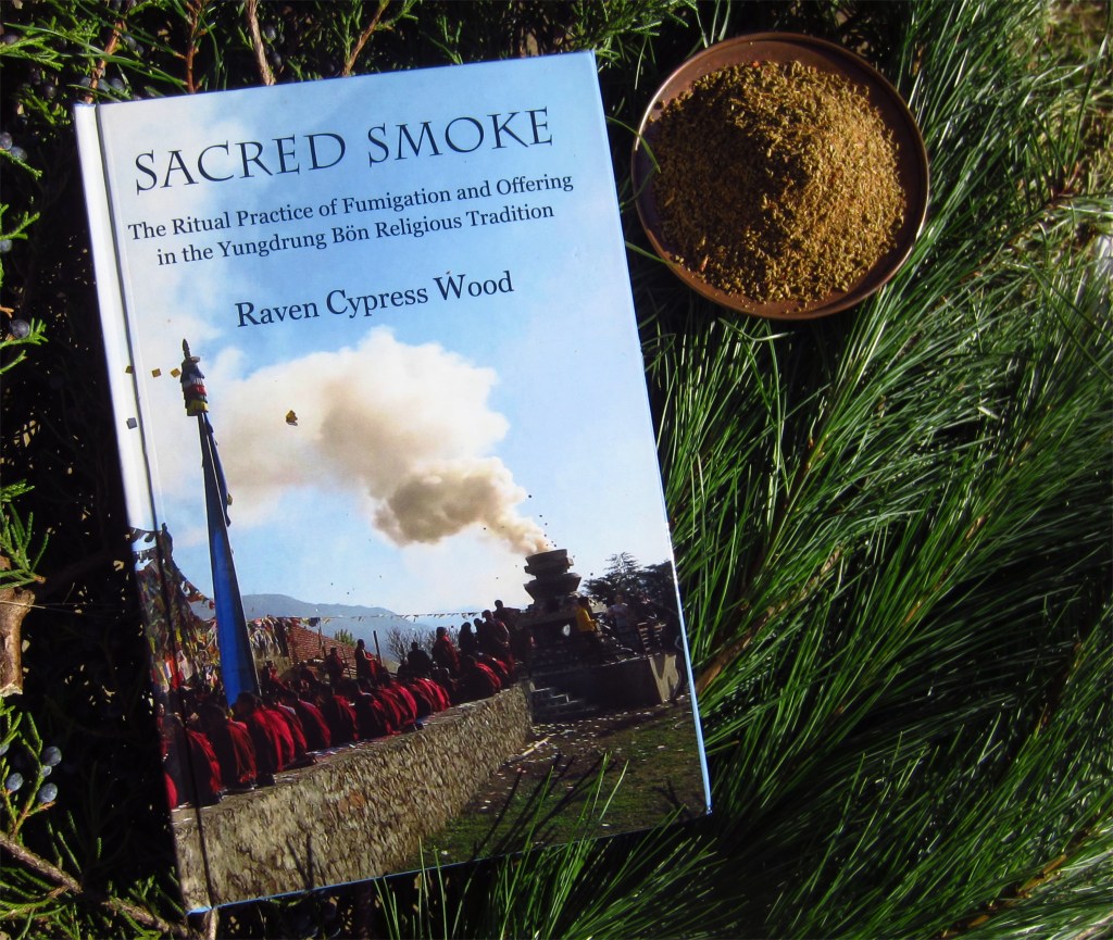 Sacred Smoke: The Ritual Practice of Fumigation and Offering in the Yungdrung Bön Religious Tradition by Raven Cypress Wood is a 175 page hardcover with black and white images. It can be purchased from the distributor from this link: https://www.lulu.com/en/us/shop/raven-cypress-wood/sacred-smoke/hardcover/product-977vd8.html?page=1&pageSize=4