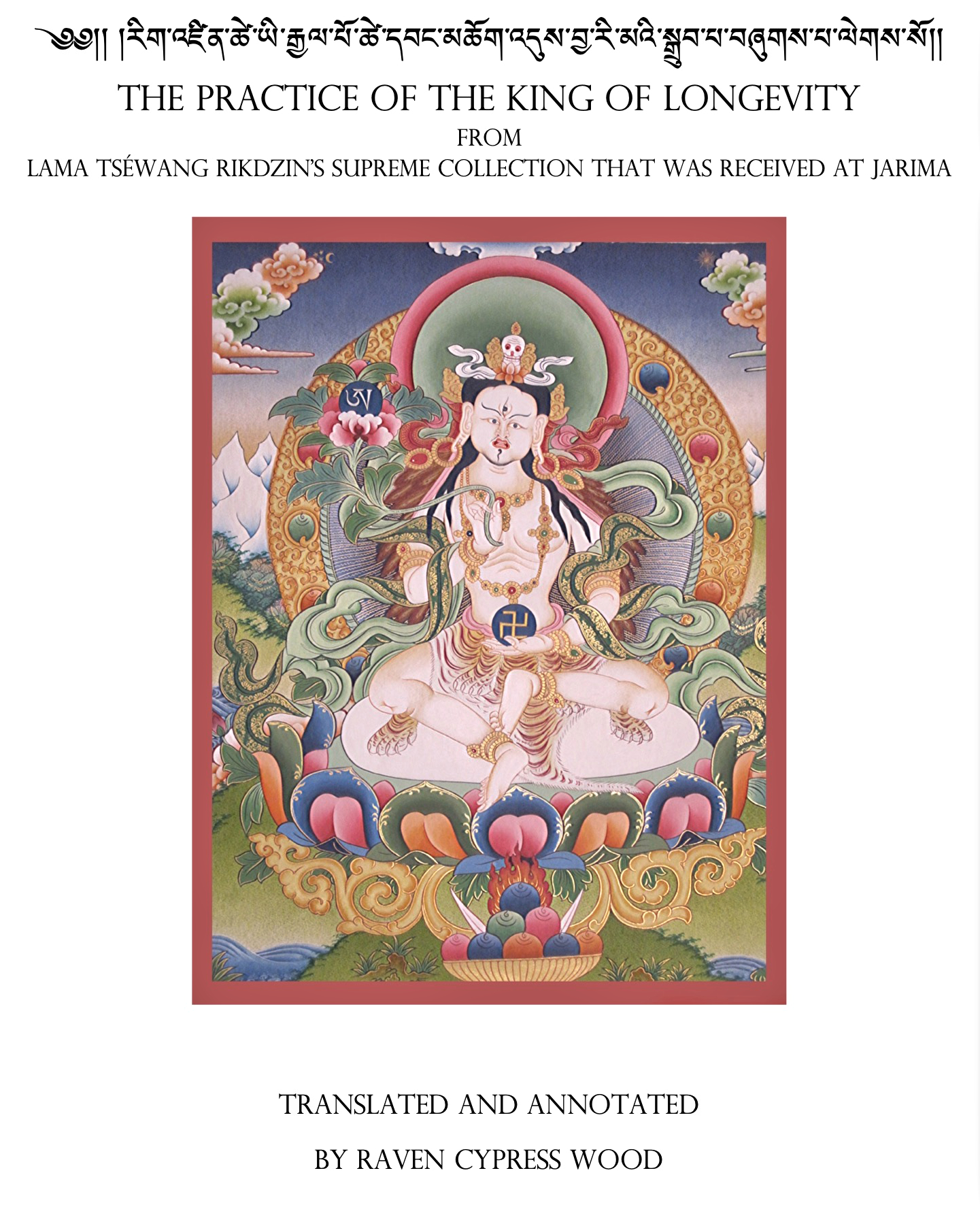 The practice manual for The Practice of the King of Longevity from the Tséwang Jarima can be ordered at the following link: https://www.lulu.com/shop/raven-cypress-wood/tsewang-jarima-longevity-practice/paperback/product-1vj77q6v.html?q=raven+cypress+wood&page=1&pageSize=4