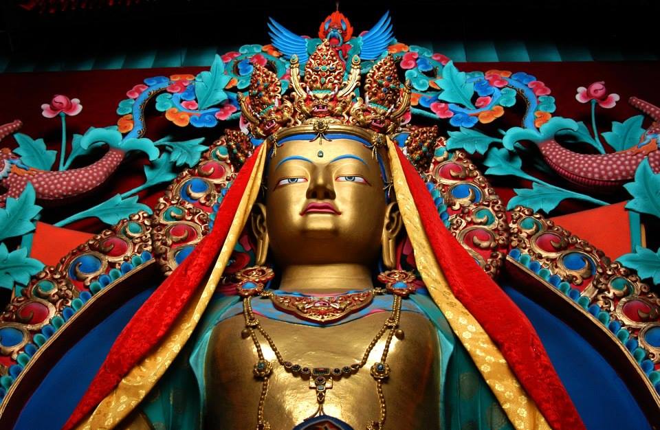 For the difficult to tame sentient beings of cyclic existence, you deeply contemplate them with wisdom and loving compassion. You pacify their suffering and misery, causing them to abandon the lower realms and to be established on the path of liberation. To the perfect guide, I prostrate!