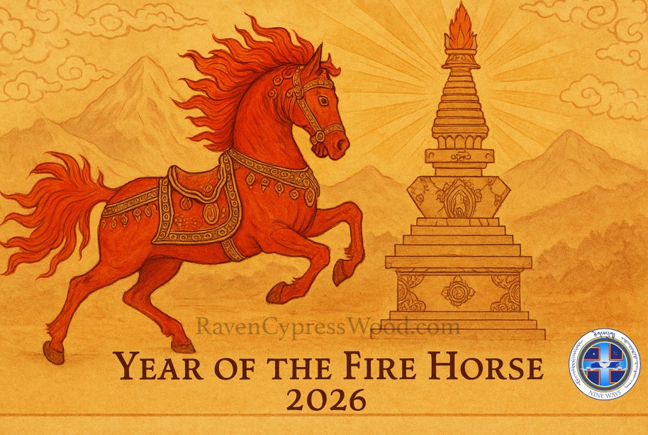 The auspicious day of March 3, 2026 is the first full moon of the Year of the Fire Horse and marks the birth anniversary of His Eminence Menri Pönlop Yangtön Trinley Nyima Rinpoche. This is an especially auspicious time to perform virtue and receive vows because the power of the activity is greatly multiplied. By taking a vow of nonviolence to abstain from eating meat from compassionate loving kindness during this time, unimaginable spiritual merit and benefit for both self and others is generated. One can accept this vow for a single day, multiple days, or for the entire Fire Horse year. The names of all those who take the vow will be offered to His Eminence Menri Pönlop Rinpoche on February 27th for the benefit of his long life and indestructible good health. Follow this link for more information and to fill out and submit the form for your personal vow of nonviolence. https://ravencypresswood.com/2026/01/24/bringing-meaning-benefit-to-2026-by-taking-a-vow-of-nonviolence-for-1-day-multiple-days-or-a-full-year/