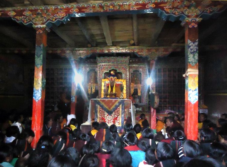 On March 8, 2016, the Yungdrung Bön temple of Deden Püntsok Ling, located in Dolpo, Nepal was completely destroyed by fire. This temple complex is located in the Sip Chok area of Dho Tarap and is commonly referred to as the Sip Chok Gompa or the Bön Tarap Gompa. The temple is run by the Yangton family and is headed by a Yangton lama. He is a householder and tantric practitioner. Responsibilities for the temple are traditionally handed down to sons, nephews or grandsons.