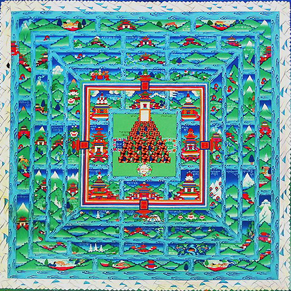 The founder of the Yungdrung Bon religious tradition, Lord Tönpa Shenrap Miwoche, was born into human form as a prince in the ancient land of Olmo Lungring within the ancient country of Tazik in the Wood Mouse year of 16,017 BC*. Having taught the Yungdrung Bön to numerous disciples within Tazik, the teachings were eventually translated into three hundred sixty languages. It is said that one hundred ninety-four of these languages pertained to realms beyond the borders of Olmo Lungring. Although Lord Tönpa Shenrap Miwoche made one journey into Tibet and taught the offering of torma as a substitute for harming living beings, the Yungdrung Bön teachings were not widespread at that time.