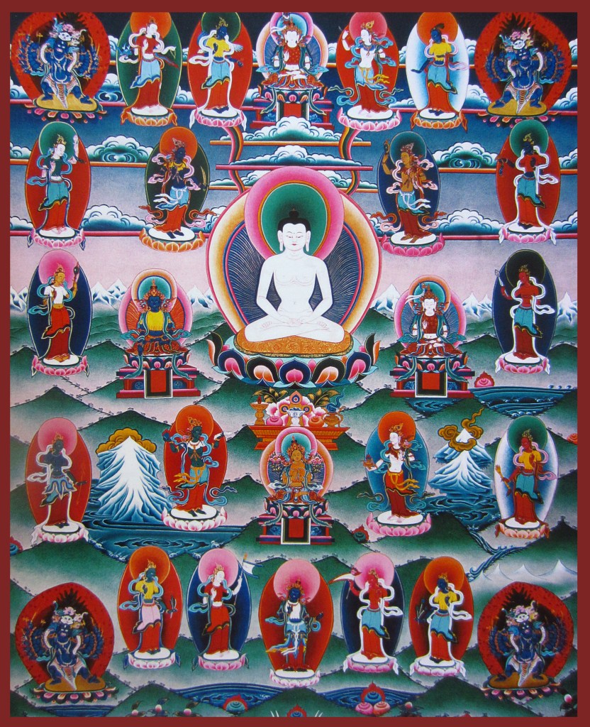 Although there are many commentaries for the meaning of the syllables of this essence mantra, this explanation is principally from the point of view of purifying obscurations.