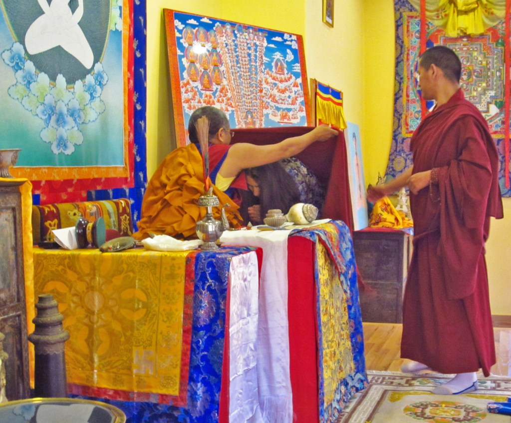 Raven Cypress Wood receiving her genyen zen from Venerable Menri Pönlop Yangtön Thrinley Nyima Rinpoche on the 11th lunar day of the 9th lunar month in 2014.