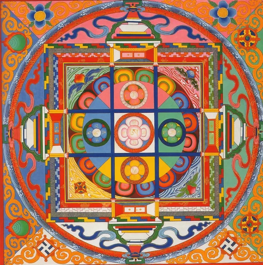 Representation of the phenomenal world with its wondrous and desirable contents created at Menri Monastery