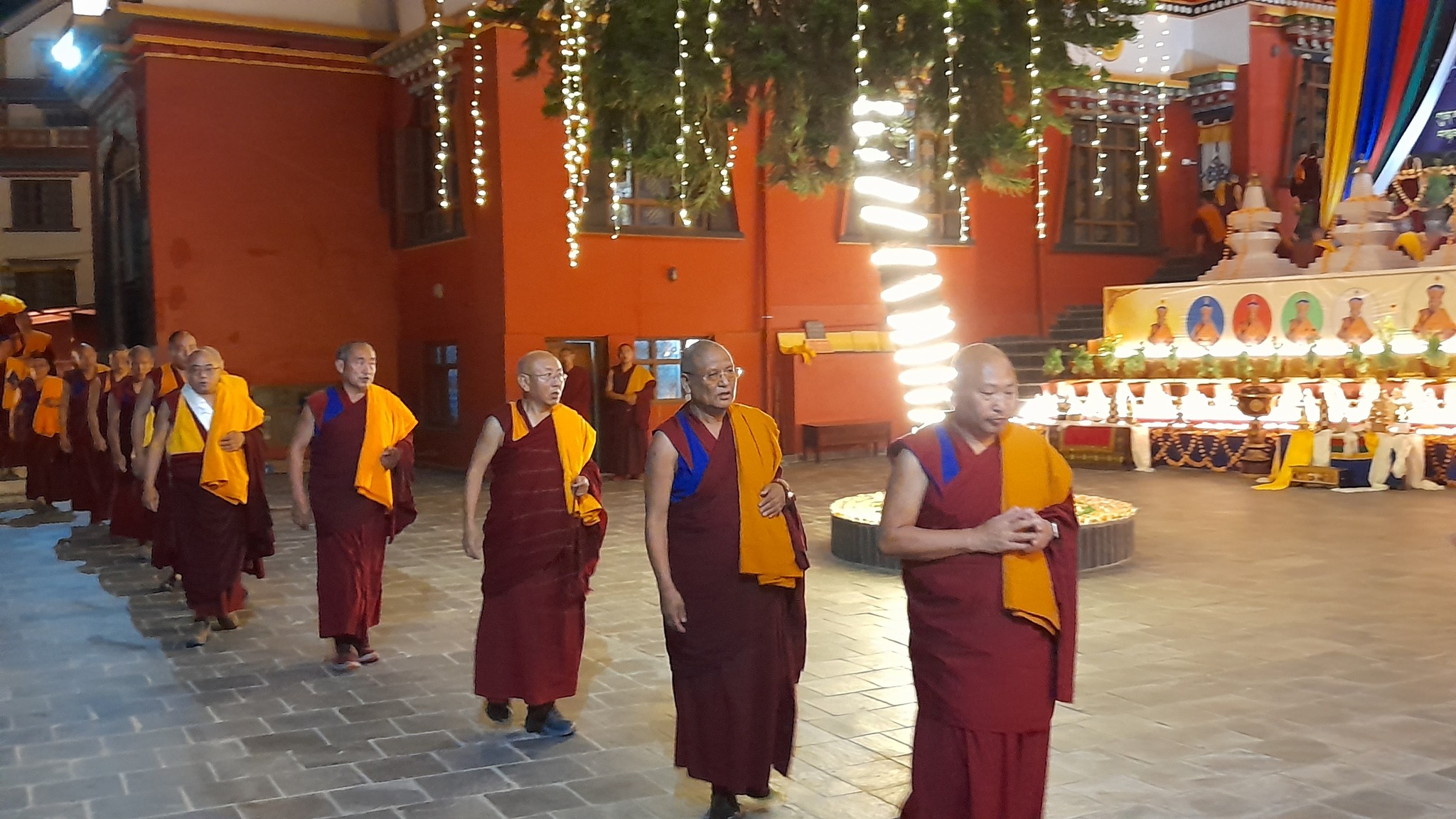 ༄༅། །ཨེ་མ་ཧོ། རྣམ་དག་འགྱུར་མེད་སྤྲུལ་པའི་ཞིང་ཁམས་ནས། དུས་གསུམ་སངས་རྒྱས་ངོ་བོ་བླ་མ་རྗེ། འགྲོ་དྲུག་འཁོར་བའི་ཆུ་ལས་བསྒྲལ་བའི་ཕིར། བླ་མེད་ཕོ་བྲང་གཞལ་ཡས་གནས་གསུམ་དུ། སྐྱོན་བྲལ་པདྨ་གསལ་འཚེར་ཉི་ཟླའི་གདན། གཅན་ལྔ་རིན་ཆེན་ཁྲི་ལ་བཞུགས་སུ་གསོལ།། ཨ་ཨཱོྃ་ཧཱུྃ༔ ཅི་པར་རདྣ་ཐ་ཚན་ར་ཡོ་ཛ༔